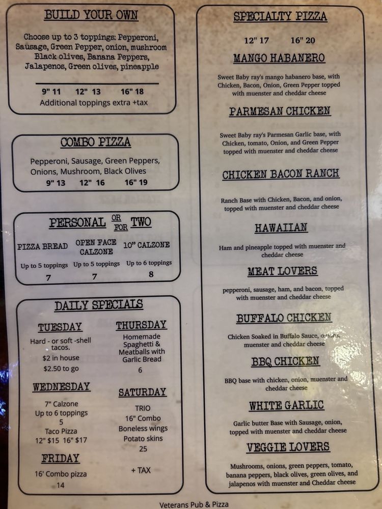 Welcome to Veterans Pub & Pizza, a cozy eatery located at 2525 NE Adams St in Peoria, IL. This local gem specializes in a mouthwatering array of pizzas, sandwiches, and refreshing salads, making it a perfect stop for food lovers.